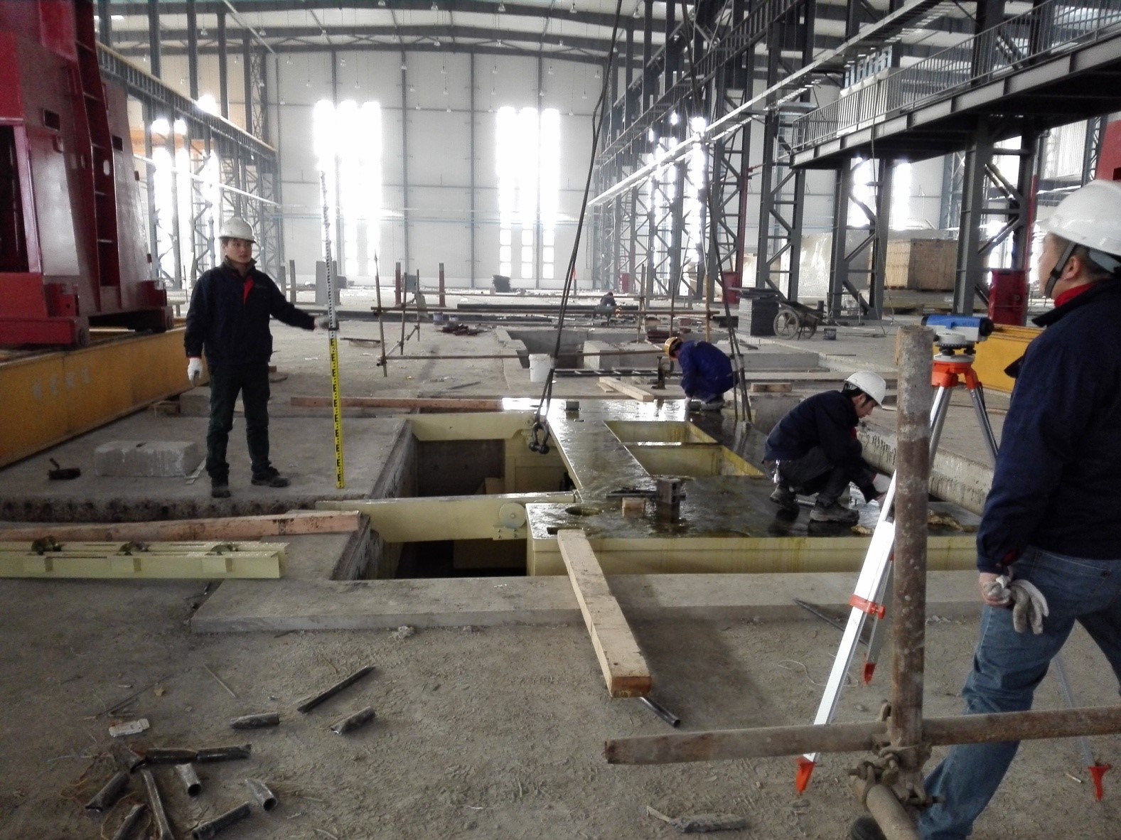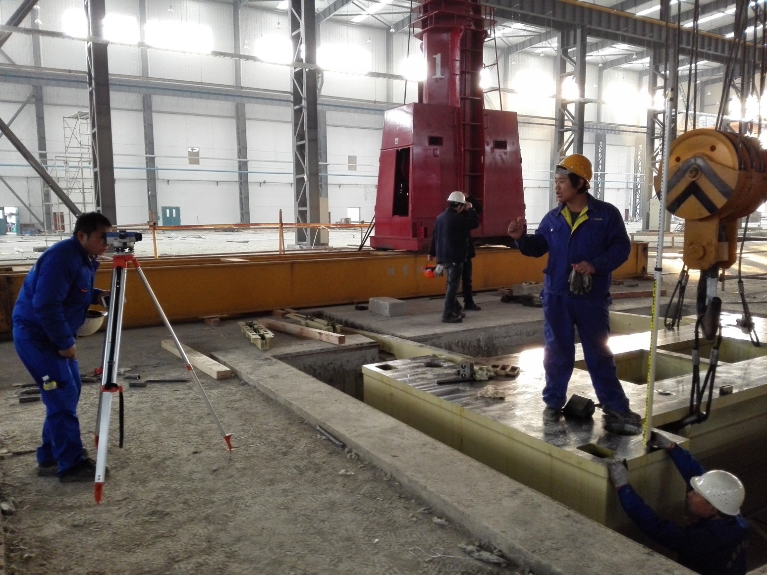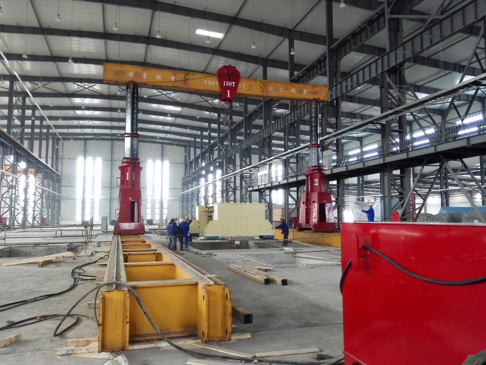 第四步:重型沖床組裝臺車安裝,臺車軌道安裝及臺車吊裝就位