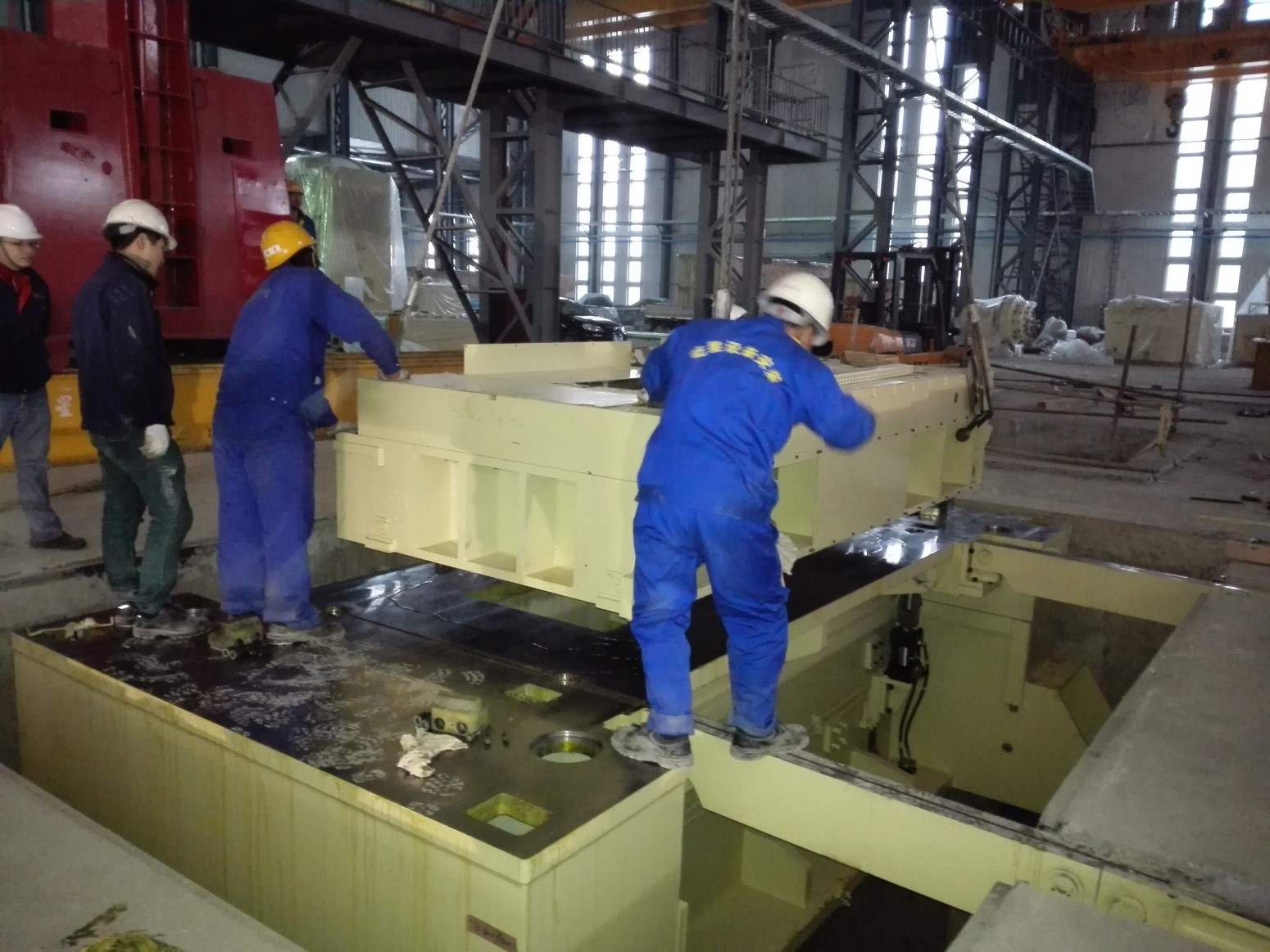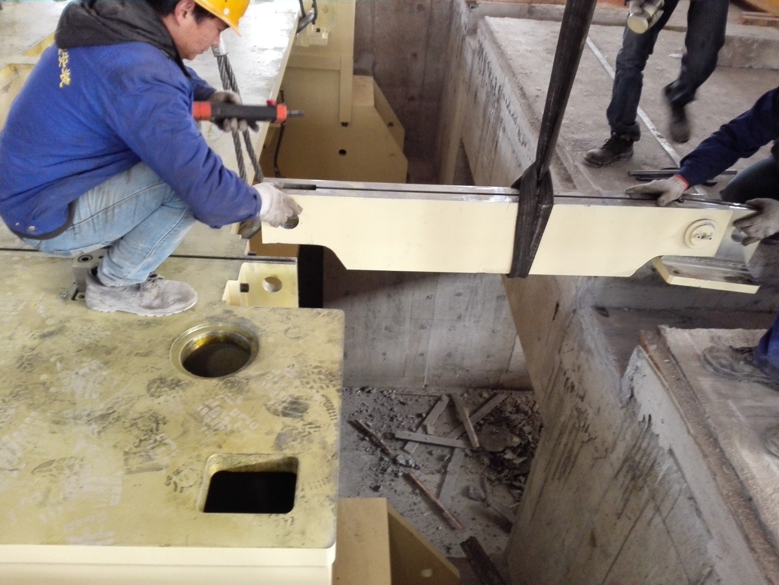 第七步:重型沖床組裝安裝滑塊-滑塊起吊位移-----滑塊起吊對接安裝----滑塊安裝到位