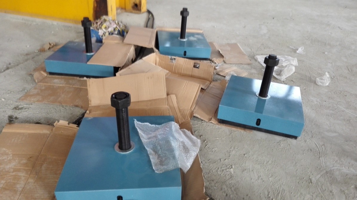 第一步:重型沖床組裝底座安裝前的附件需要準備完善(地膠墊安裝)