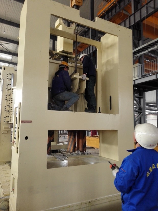 第五步:重型沖床組裝吊裝補強桿及安裝左右中臺身