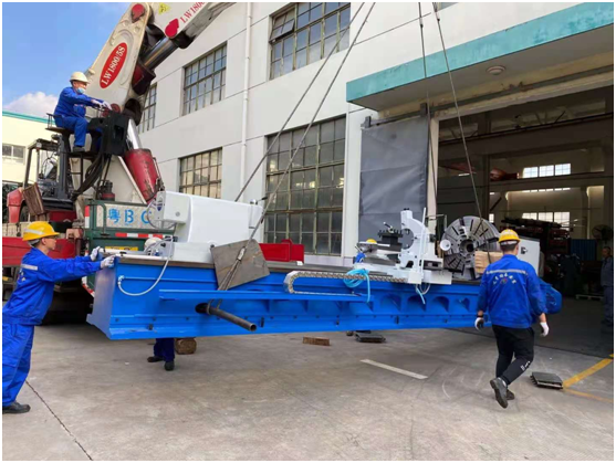 2.就以上圖來說,一臺(tái)“臥式車床”設(shè)備需要我司吊裝卸車就位工程。首先使用鋼絲繩與設(shè)備的四個(gè)吊裝角銜接好之后慢慢起吊。吊裝過程中需要隨時(shí)注意設(shè)備重心的偏向,所以這就需要專業(yè)的吊裝人員來操作這一項(xiàng)作業(yè)。