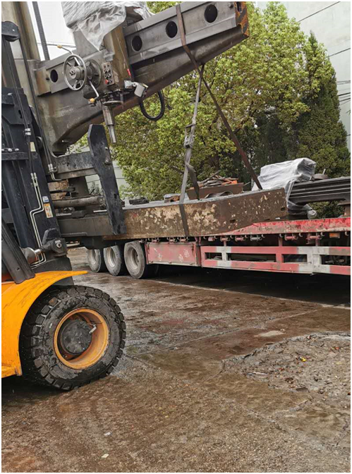 2.在設(shè)備搬運(yùn)時(shí),首先要了解設(shè)備的特點(diǎn),就以上圖片來講,有些企業(yè)應(yīng)該也認(rèn)識,這臺設(shè)備名叫“搖臂鉆床”在進(jìn)行搬運(yùn)之前,理應(yīng)在上方操作臺滑動(dòng)處用布帶和底部連接綁好,以防止在搬運(yùn)時(shí)設(shè)備滑動(dòng)所造成的意外。