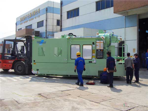 上海桂星裝卸搬運(yùn)公司采用1臺(tái)10噸叉車(chē)牽引以完成此次工程中大型注塑機(jī)的設(shè)備搬運(yùn)工作。